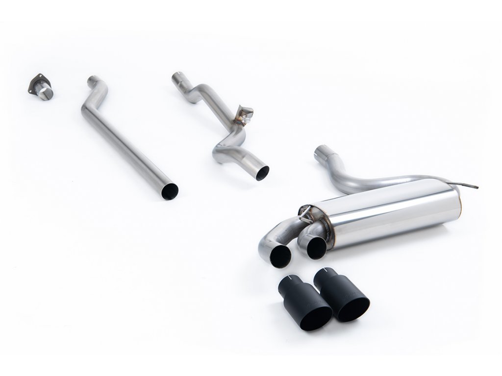 Non-resonated (louder). Cerakote Black OEM-Style Tips. Requires 4 holes to be drilled into the boot floor to allow fitment of the new Milltek Sport exhaust hangers
