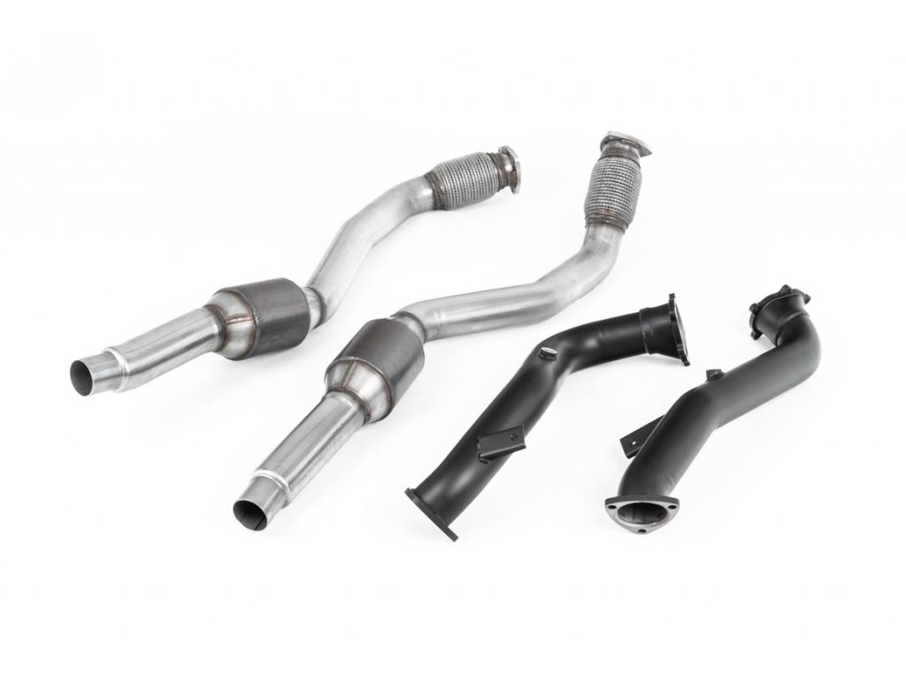Larger-bore 76mm Downpipes with 100-cell hi-flow sports catalysts for highly tuned cars. Downpipes feature ultra-durable semi-gloss black Cerakote coating. Must be fitted with the OE cat-back system and requires a stage 2 ECU remap. (lambda cables need extending)