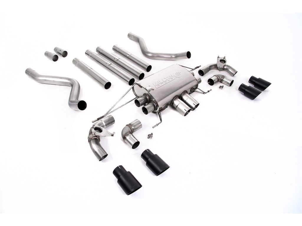 Cat Back Valved System with Quad GT-90 Cerakote Black Trims - Non-Resonated (Loudest)
