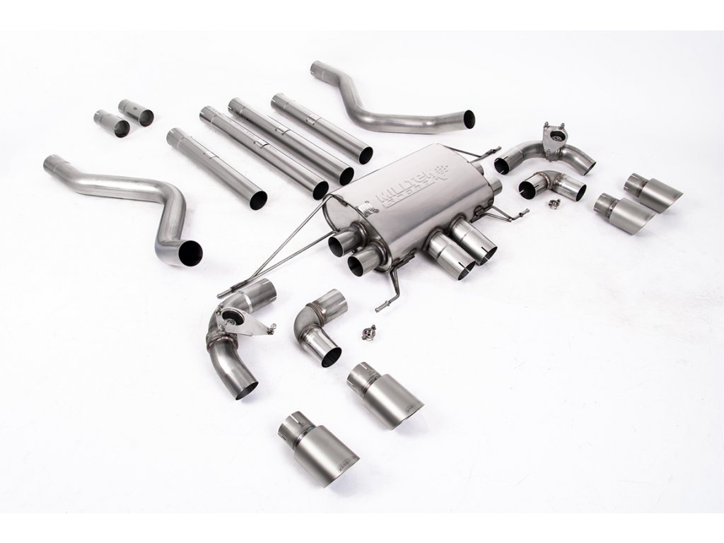 Cat Back Valved System with Quad GT-90 Brushed Titanium Trims - Non-Resonated (Loudest)